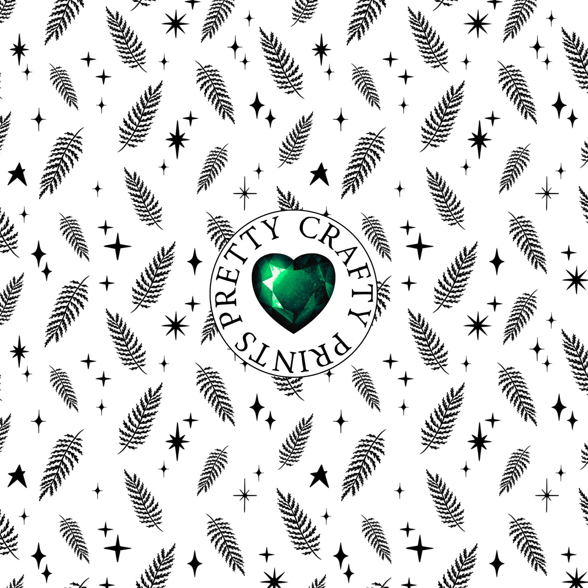 Bring a touch of moody minimalism to your projects with this Black Fern & Stars Vinyl Print. Featuring a seamless pattern of botanical fern leaves paired with twinkling celestial stars, this black-on-white design offers a witchy yet clean vibe that blends nature and cosmic energy.